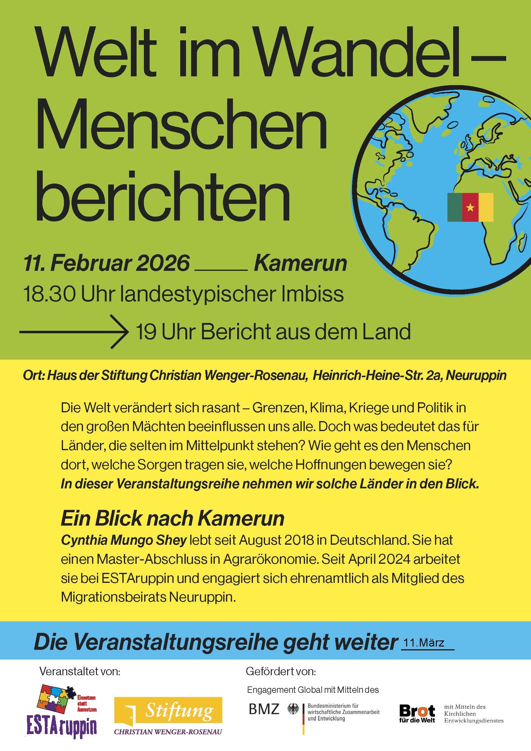 Aus Kamerun berichtet am 11.02.26 um 19.00 Uhr Cynthia Mungo-Shey im Stiftungshaus der Wenger-Rosenau-Stiftung, Heinrich- Heine-Str. 2a